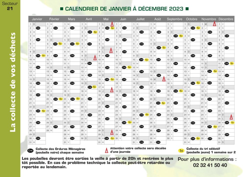 A compter du 1er janvier, pensez à utiliser le calendrier de collecte 2024 pour connaitre les dates de passage des ramassages des ordures ménagères et de tri sélectif dans la commune de Routot.