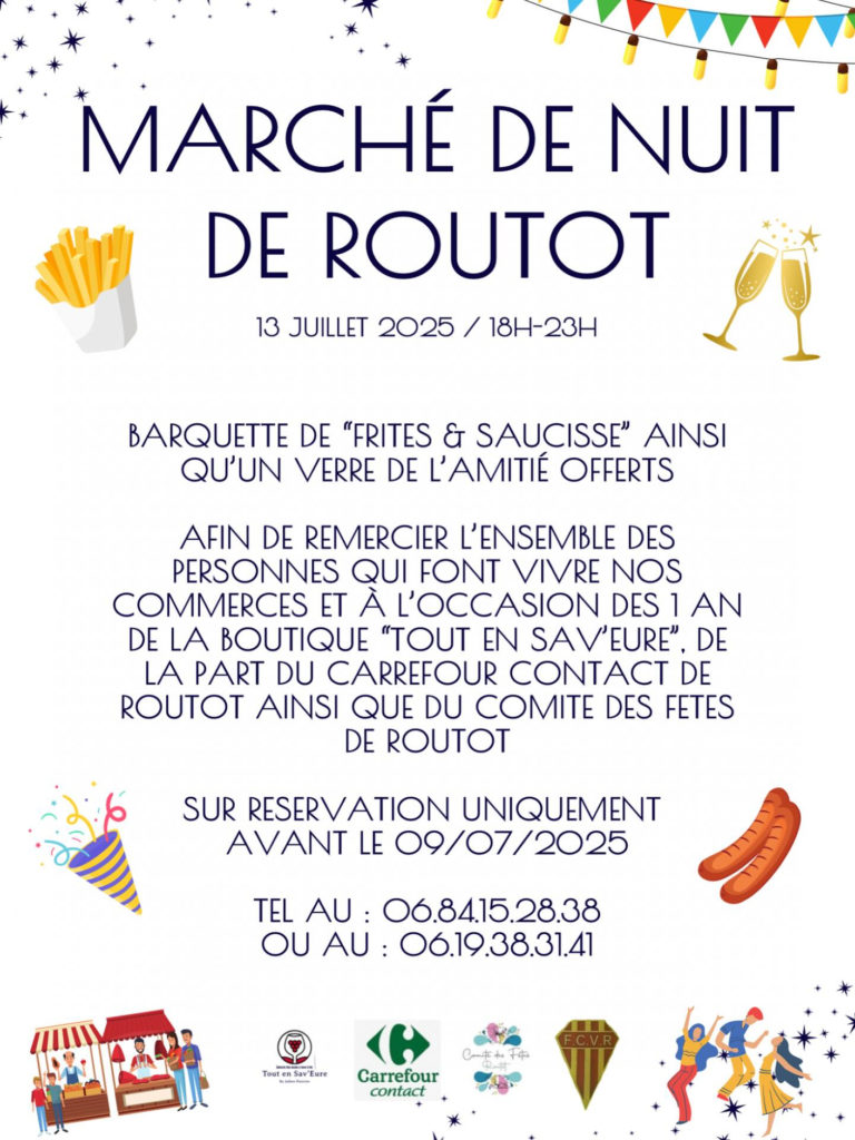 Le comité des fêtes organise pour le dimanche 13 juillet un grand marché nocturne de 18h à 23h avec un bal sous la halle dès 21h