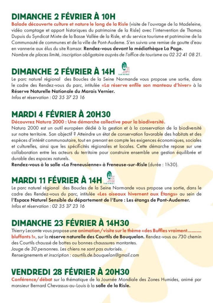 A l’occasion de la journée mondiale des zones humides qui se déroule dimanche 2 février, plusieurs manifestations auront lieu sur le territoire de la Communauté de communes de Pont-Audemer Val de Risle.