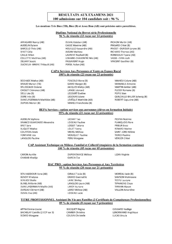 Chaque année, la Maison Familiale Rurale transmet pour communication les résultats de fin d’année de leurs étudiants.