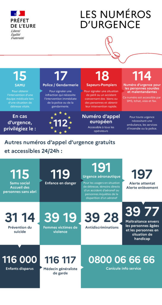 Numéro de sécurité en cas d’urgence : 0 801 01 07 07